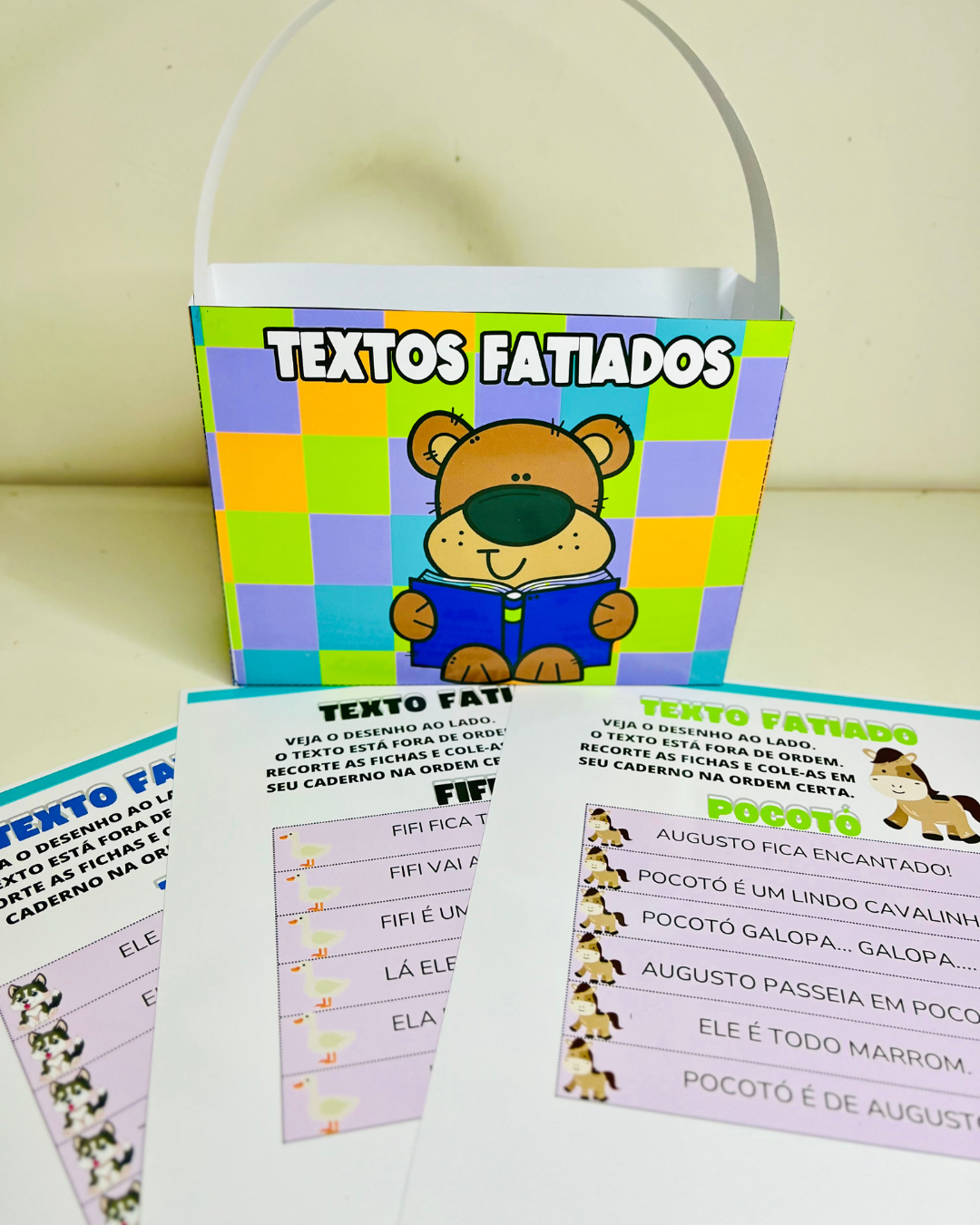 Este arquivo contém textos fatiados, organizados de forma que o aluno deve reconstruí-los, favorecendo o desenvolvimento da compreensão textual e da ordem das palavras. O material acompanha uma linda maletinha para armazenar e transportar as peças de forma prática e organizada. Com valor de R$ 8,00, o arquivo é perfeito para atividades pedagógicas que estimulam a leitura, a reconstituição de textos e o raciocínio lógico. Ideal para professores e pais que desejam proporcionar um aprendizado dinâmico e divertido para crianças em fase de alfabetização.